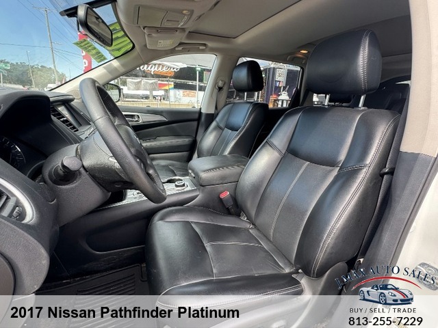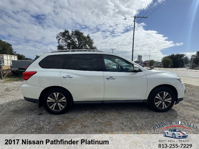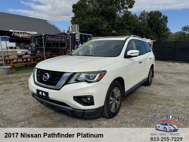 Are you in the market for a reliable and luxurious SUV? Look no further than our stunning 2017 Nissan Pathfinder Platinum! With its sleek design, spacious interior, and top-of-the-line features, this vehicle is sure to turn heads wherever you go. Equipped with a powerful 3. 5L V6 engine and smooth CVT transmission, this Pathfinder offers both performance and efficiency on the road. Safety is also a top priority with airbags, anti-lock brakes, and keyless entry included. Whether you're cruising down the highway or navigating through city streets, this SUV provides a comfortable ride for you and your passengers. Don't miss out on this incredible opportunity to own a quality vehicle at an unbeatable price. Contact us today to schedule a test drive and experience the luxury of driving a Nissan Pathfinder Platinum firsthand!